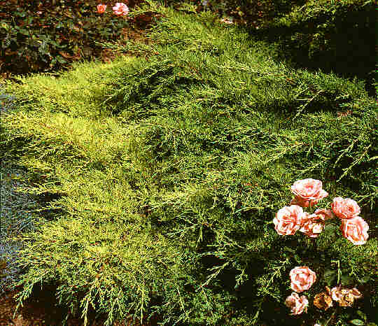 Der Kriechwacholder Gold Coast fällt vor allem wegen seiner leuchtend goldenen Nadeln ins Auge. Sie bringen das ganze Jahr über Farbe in den Garten, lediglich im Winter werden die Nadeln etwas dunkler. Der Kriechwacholder Gold Coast braucht einen sonnigen oder nur leicht schattigen Standort, ansonsten ist er anpruchslos und gedeiht auf allen trockenen bis feuchten Böden. Er wächst kompakt und flach, wird nur 1 Meter hoch, aber 3 Meter breit. |