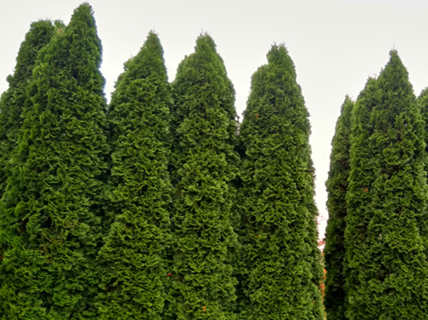 gedrungen, so dass ´Smaragd´-Hecken jahrelang nicht geschnitten werden