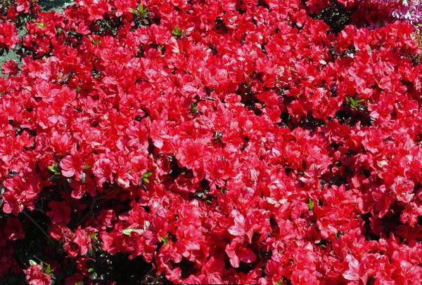Das unglaubliche Karminrot dieser Azalee ist sehr beeindruckend. Das leuchtende Rot bleibt auch bei voller Sonne erhalten. Die Japanische Azalee 'Maruschka' begeistert mit ihrer üppigen Blüte von Ende Mai bis Mitte Juni. Sie wächst dicht-kompakt und wird im Alter etwa 50 cm hoch und 70 cm breit. Ideal für kleine Gartenräume, zur Grabbepflanzung und für Balkonkästen und Kübel.