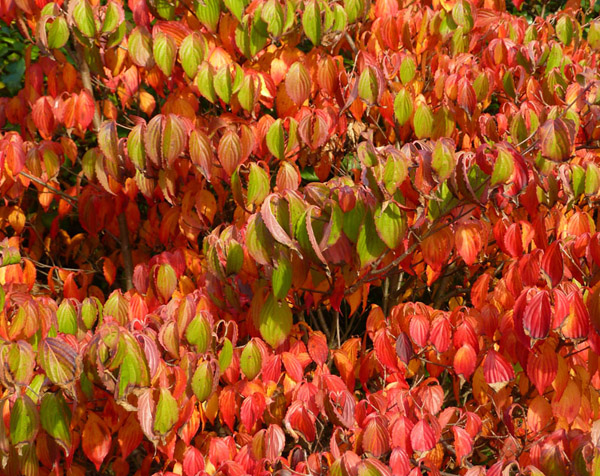 Der Chinesische Blumenhartriegel weiß mehrmals im Jahr zu begeistern: Im Frühling entwickelt er große, weiße Brakteenblüten. Später schmückt es sich mit dekorativen, himbeerartigen Früchten. Die Früchte sind eßbar, die Schale sollte man wegen ihres bitteren Geschmacks nicht mitessen. Im Herbst färbt sich das Laub leuchtend rot.