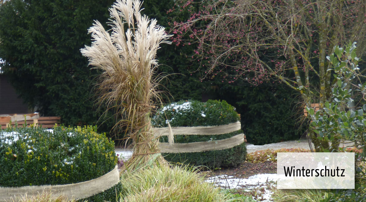 Die großen Ziergräser sind unterschiedlich winterhart. Meist leiden sie unter der Nässe im Winter. Als Winterschutz werden die mächtigen Horste des Pampasgras am Schopf zusammengebunden. Das wärmt und hält den Vegetationspunkt trocken.