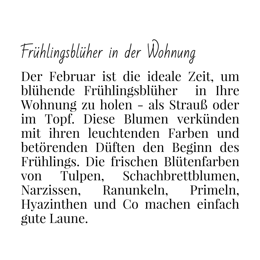 Im März finden Sie hier: Frühlingsblumen, die glücklich machen. Schauen Sie wieder rein, es lohnt sich.