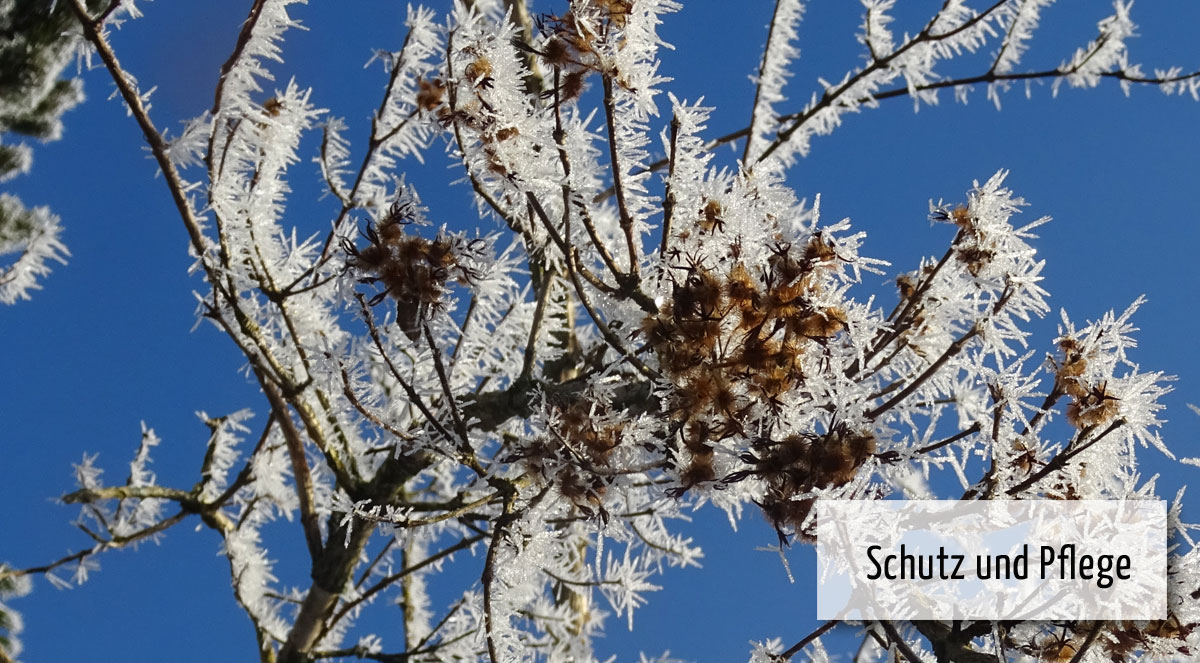 Verholzte Triebe, Baumstämme unterliegen bei starken Temperaturschwankungen einer regelrechten Zerreißprobe. Deshalb kann man sie bei tiefen Temperaturen durch eine Umhüllung mit Schilfmatten oder Stoffen vor direkter Sonnenbestrahlung schützen.